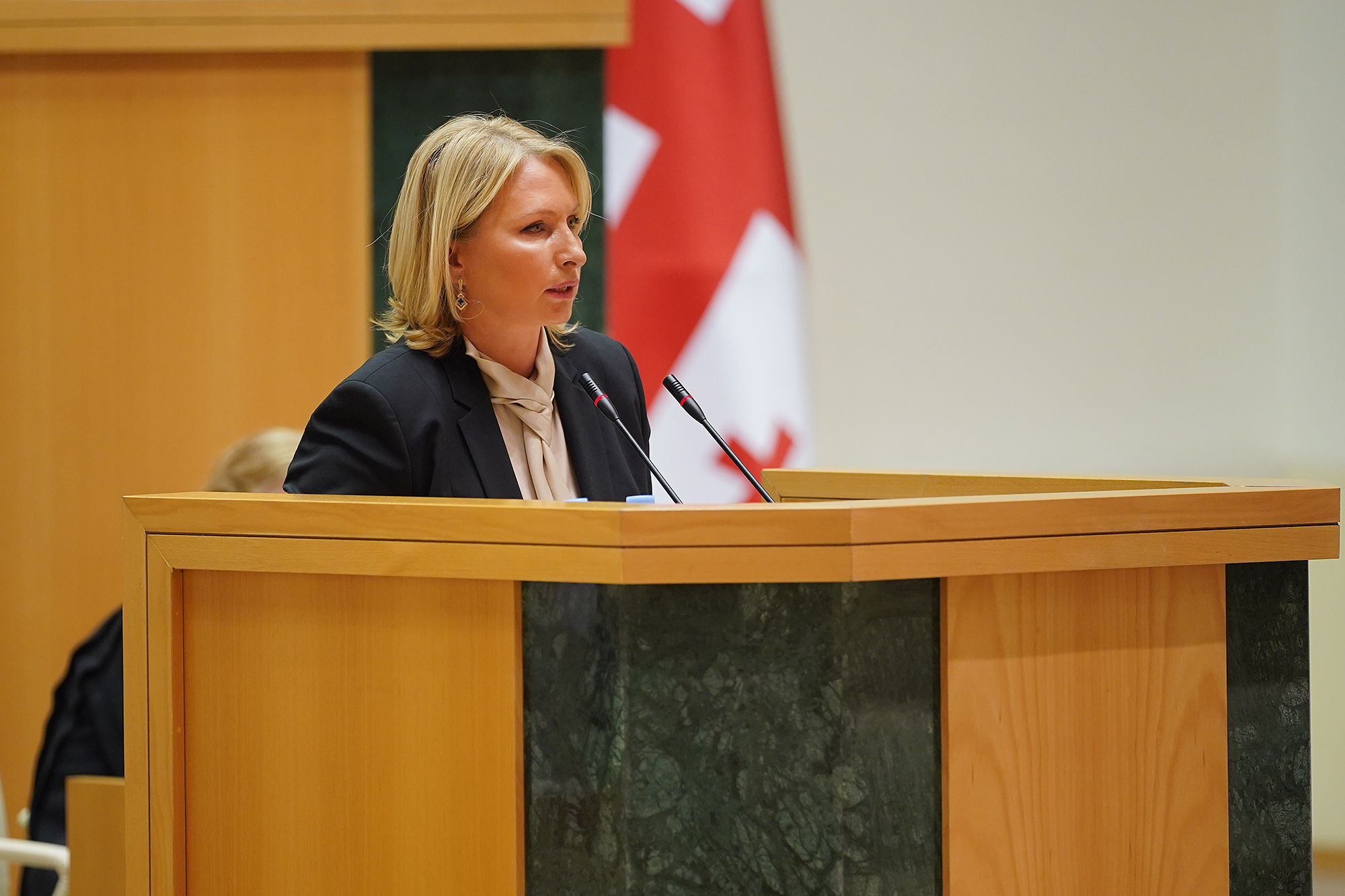 საქართველოს პარლამენტის სესიაზე მოხსენების დროს, რომელიც „მინ...