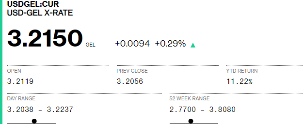 Bloomberg-ზე დღეს 1 დოლარის ვაჭრობა 3.2119-ად დაიწყო, ხოლო 15:00&nb...