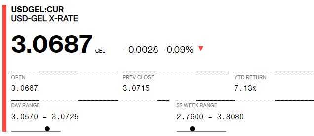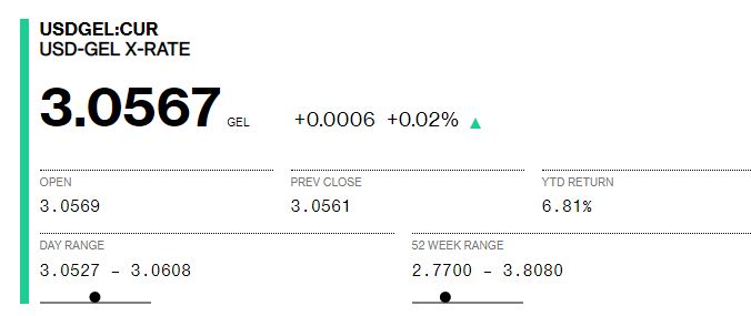 Bloomberg-ზე დღეს 1 დოლარის ვაჭრობა 3.0606-ად დაიწყო, ხოლო 13:15 სა...