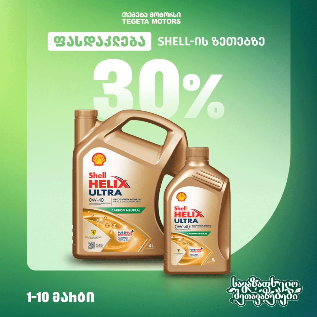 30%-იანი ფასდაკლება shell-ის ბრენდის ზეთების სრულ ასორტიმენტზე