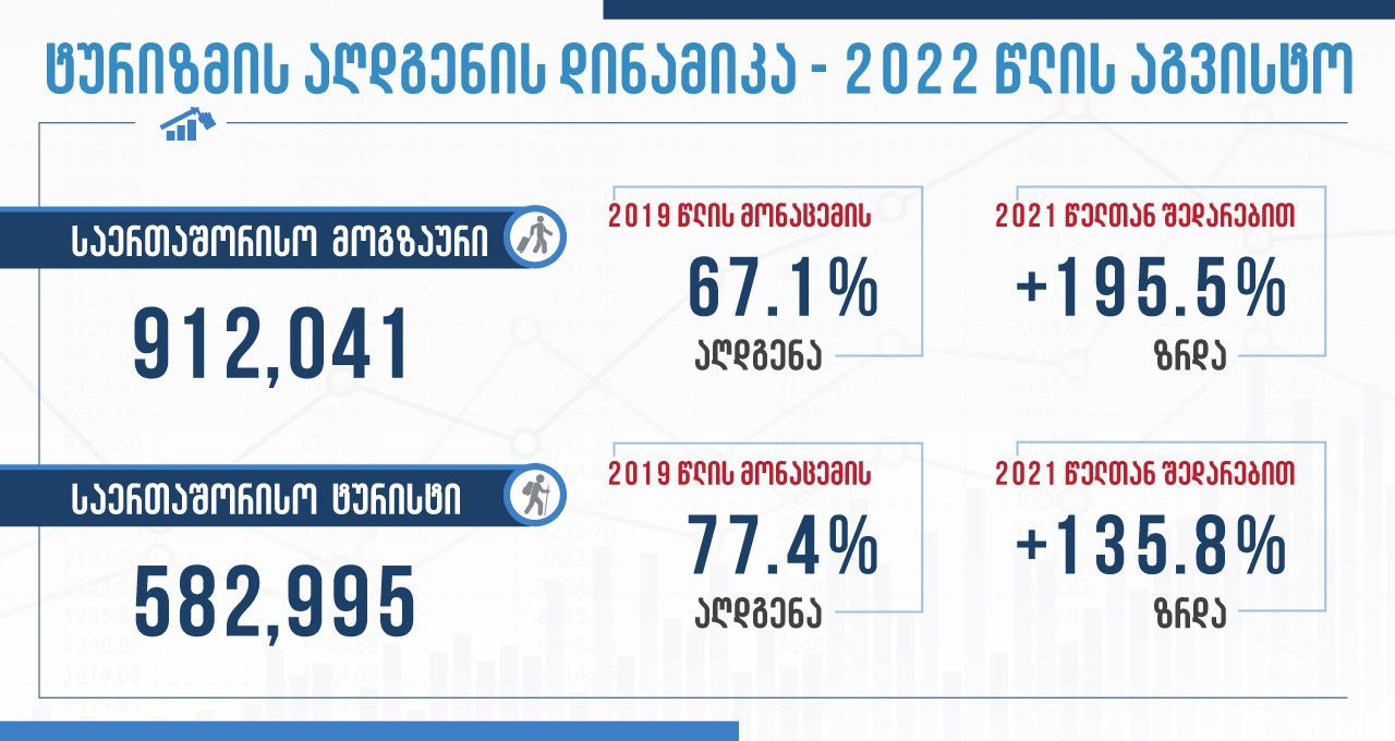 ტურიზმის ეროვნული ადმინისტრაცია აგვისტოს თვის სტატისტიკურ მონაცემებ...