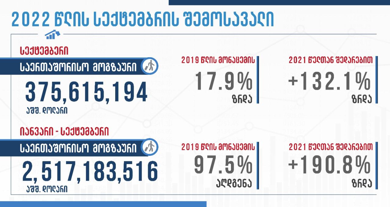 ტურიზმის ეროვნული ადმინისტრაცია სექტემბრის თვის შემოსავლების ...