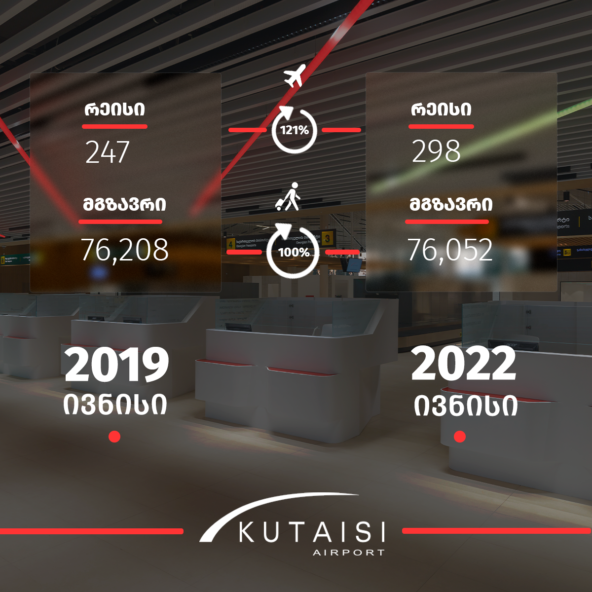 ქუთაისის საერთაშორისო აეროპორტში საჰაერო მიმოსვლის დადებითი დინამიკ...