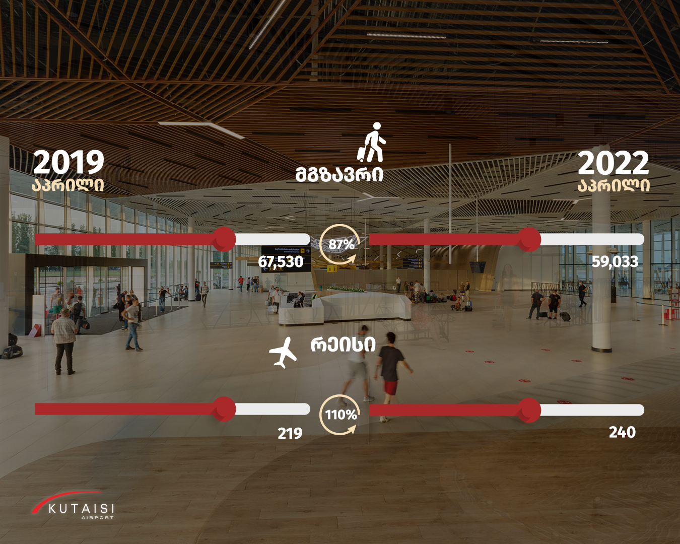 ქუთაისის საერთაშორისო აეროპორტში საჰაერო მიმოსვლის დადებითი დინამიკ...