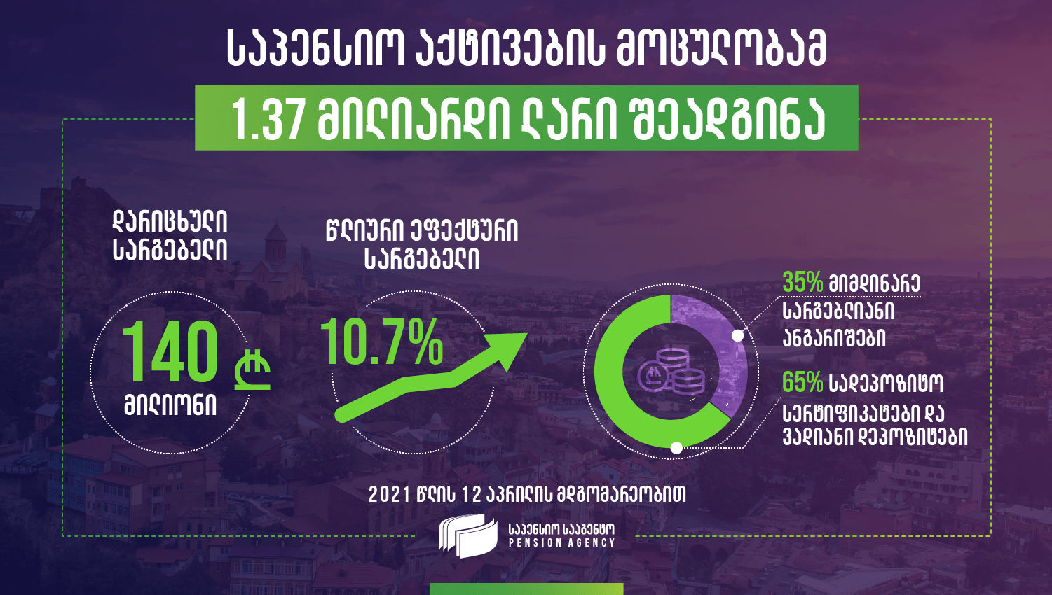 12 აპრილის მდგომარეობით, საპენსიო აქტივების მოცულობამ 1.37 მილიარდი...