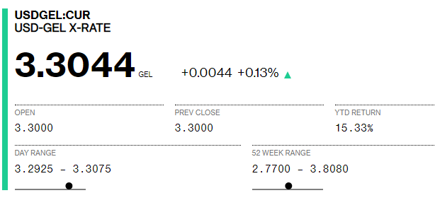 Bloomberg-ზე დღეს 1 დოლარის ვაჭრობა 3.3000-ად დაიწყო, ხოლო 13:...
