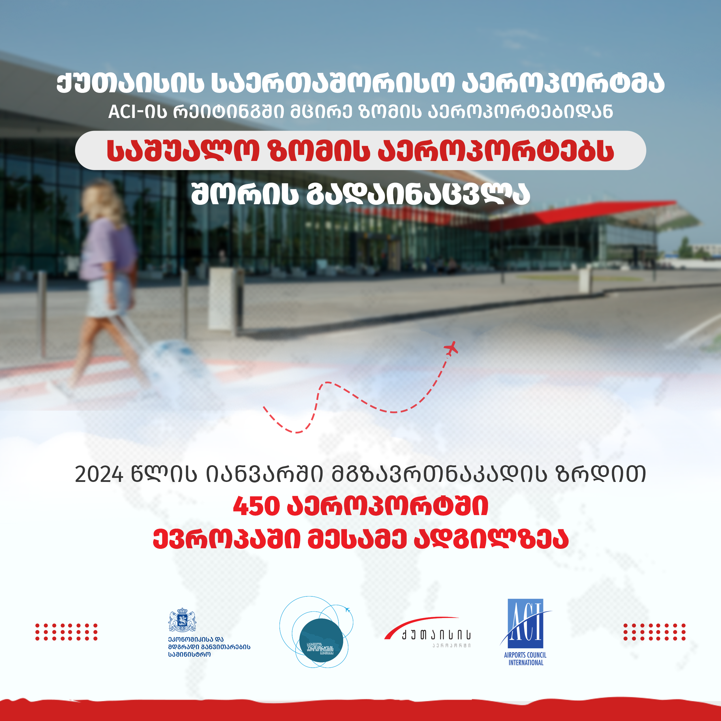 ქუთაისის აეროპორტმა ACI (აეროპორტების საერთაშორისო საბჭო) რეიტინგებ...