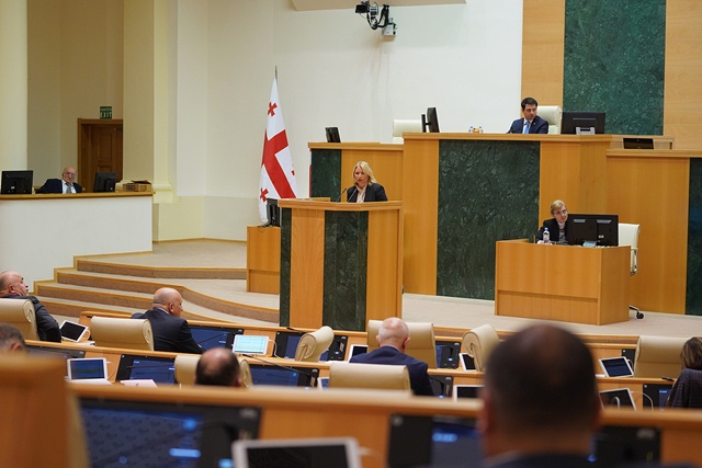 საქართველოს პარლამენტის სესიაზე მოხსენების დროს, რომელიც „მინ...