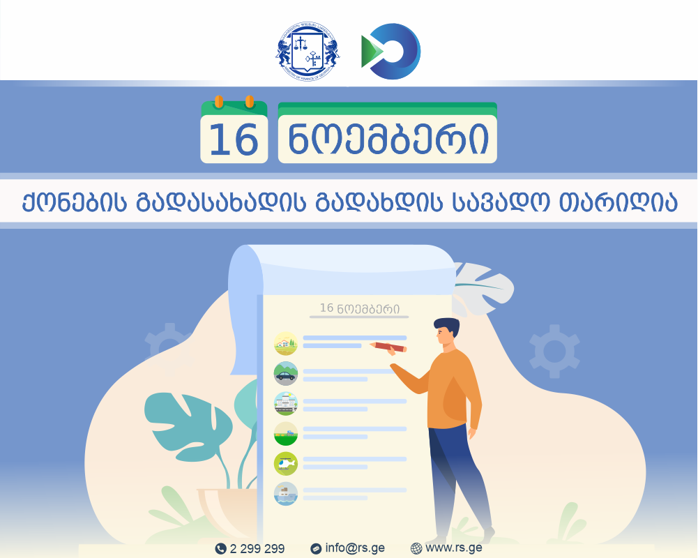ფინანსთა სამინისტროს შემოსავლების სამსახური შეგახსენებთ, რომ 16 ნოე...