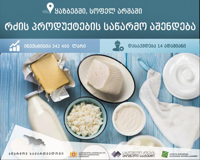 რძის პროდუქციის მწარმოებელი საწარმო ყაზბეგის მუნიციპალიტეტში, სოფელ...