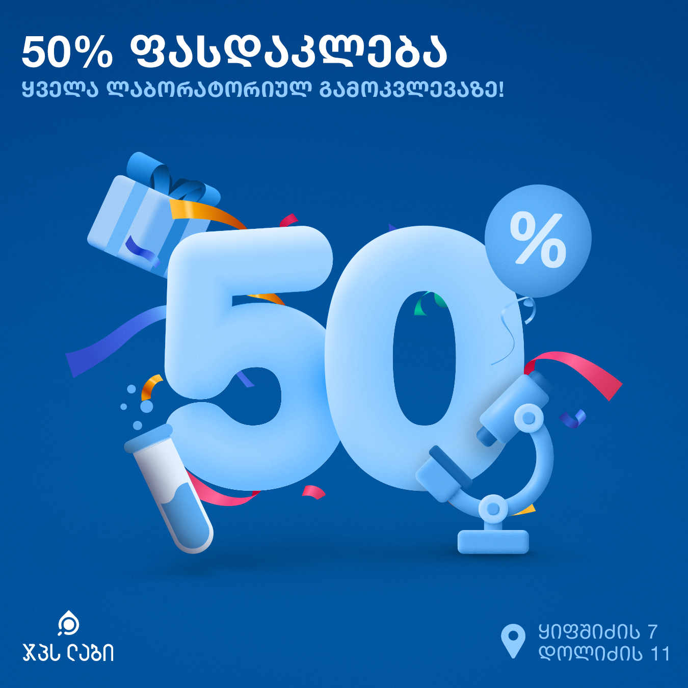 „ჯპს ლაბში“ ნებისმიერ ლაბორატორიულ გამოკვლევაზე 50% ფას...
