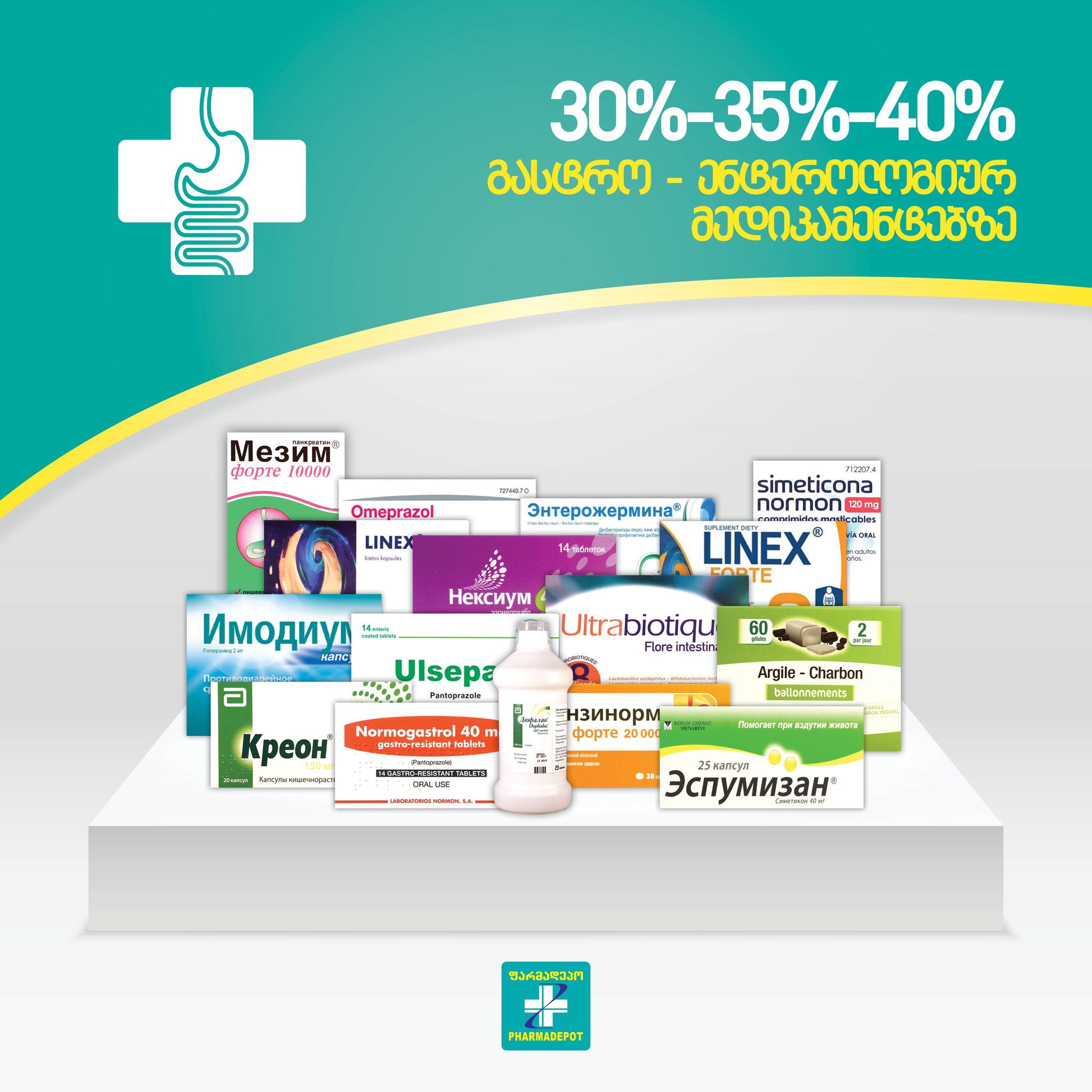 შეიძინეთ გასტრო-ენტეროლოგიური მედიკამენტები ფასდაკლებით ფარმად...