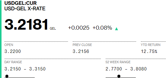 Bloomberg-ზე დღეს 1 დოლარის ვაჭრობა 3.2075-ად დაიწყო, ხოლო 15:55&nb...
