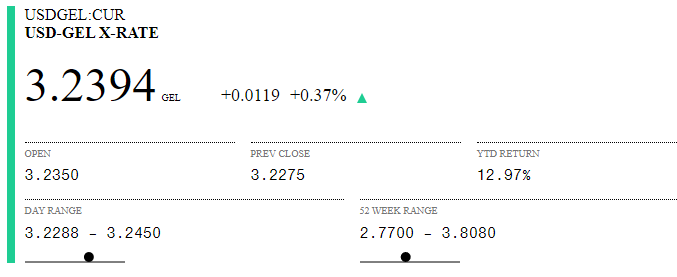 Bloomberg-ზე დღეს 1 დოლარის ვაჭრობა 3.2350-ად დაიწყო, ხოლო 11:45&nb...