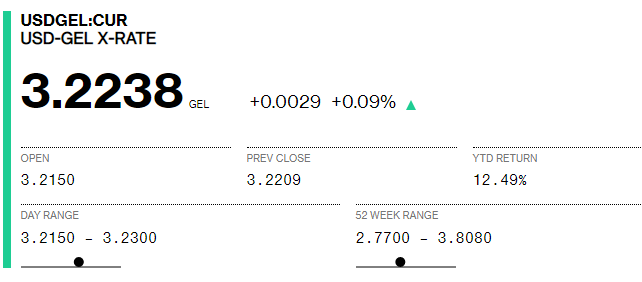 Bloomberg-ზე დღეს 1 დოლარის ვაჭრობა 3.2150-ად დაიწყო, ხოლო 13:30&nb...