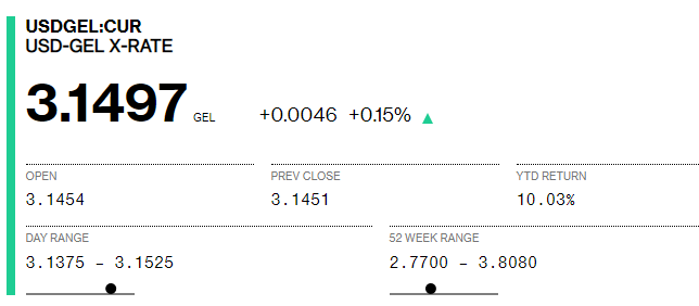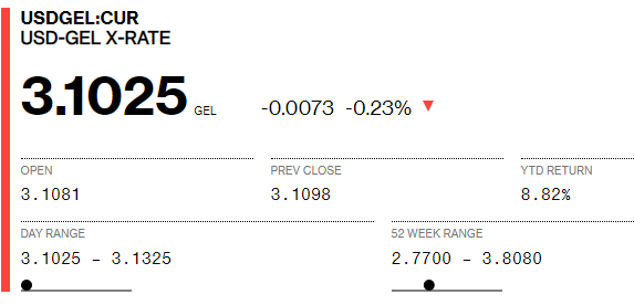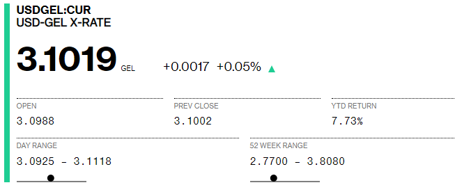 Bloomberg-ზე დღეს 1 დოლარის ვაჭრობა 3.0988-ად დაიწყო, ხოლო 11:50 სა...