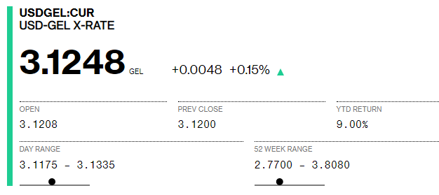 Bloomberg-ზე დღეს 1 დოლარის ვაჭრობა 3.1208-ად დაიწყო, ხოლო 15:32&nb...