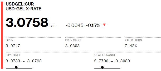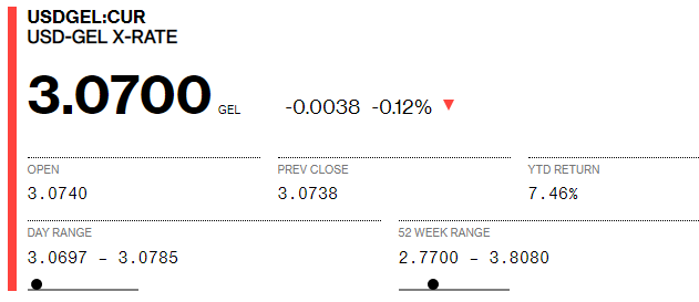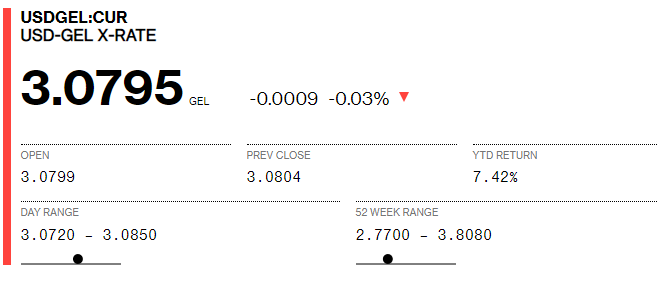 Bloomberg-ზე დღეს 1 დოლარის ვაჭრობა 3.0799-ად დაიწყო, ხოლო 11:50&nb...