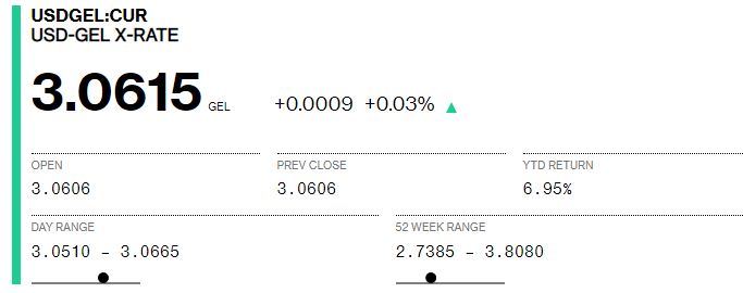 Bloomberg-ზე დღეს 1 დოლარის ვაჭრობა 3.0606-ად დაიწყო, ხოლო 13:15 სა...