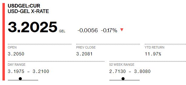 Bloomberg-ზე დღეს 1 დოლარის ვაჭრობა 3.2075-ად დაიწყო, ხოლო 15:00 სა...