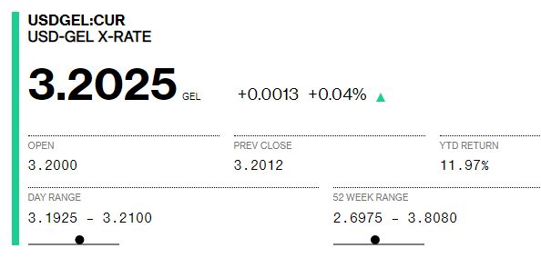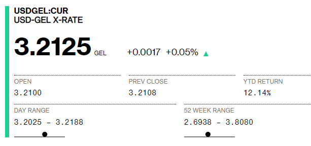 Bloomberg-ზე დღეს 1 დოლარის ვაჭრობა 3.2100-ად დაიწყო, ხოლო 12:25 სა...