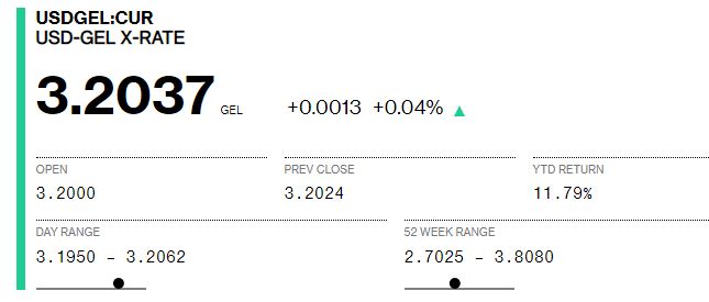 Bloomberg-ზე დღეს 1 დოლარის ვაჭრობა 3.2044-ად დაიწყო, ხოლო 12:00 სა...