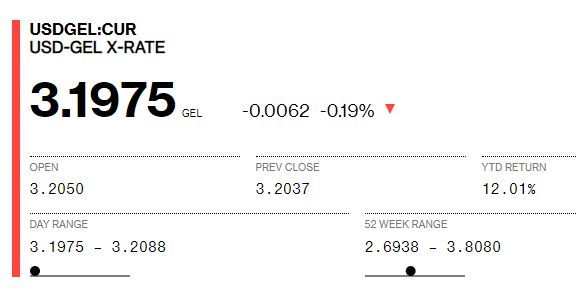 Bloomberg-ზე დღეს 1 დოლარის ვაჭრობა 3.200-ად დაიწყო, ხოლო 15:30 საა...